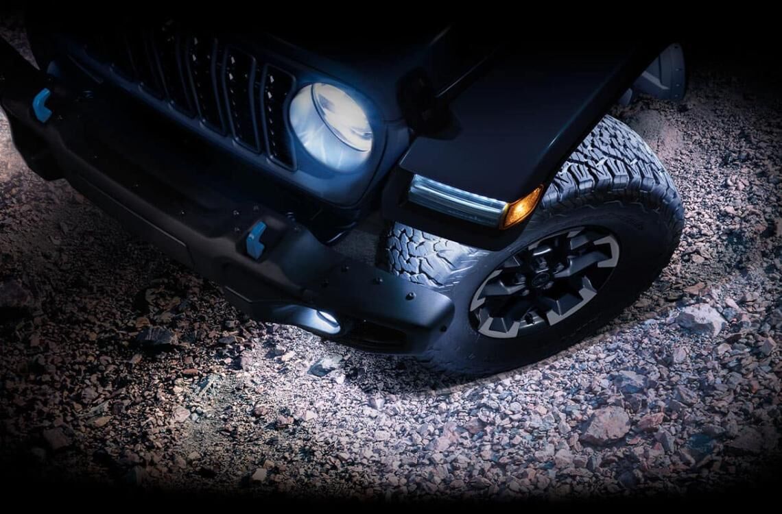 Нова, більш агресивна решітка радіатора, натхненна Jeep® Rubicon 20th Anniversary Edition, візуально розширює передню частину. Вбудована у лобове скло антена TRAIL-READY STEALTH мінімізує ризики пошкоджень на бездоріжжі. Масивні крила з інтегрованими протитуманними фарами та поворотниками підкреслюють потужність Wrangler. 18" та 17" колісні диски із "зубастими" шинами відображають позашляховий характер.